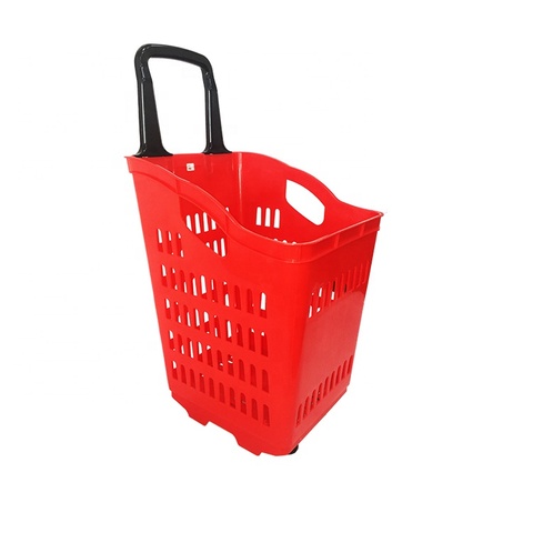Cestino del carrello della spesa del supermercato in plastica con ruote comodo cestino della spesa