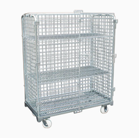 접을 수있는 접이식 아연 도금 금속 와이어 메쉬 롤 케이지 컨테이너 보안 보관 네스팅 4 륜 쇼핑 트롤리 및 카트