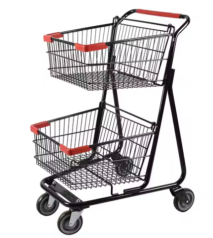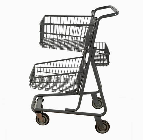 รถเข็นซูเปอร์มาร์เก็ตตะกร้าคู่รถเข็นช้อปปิ้งดีไซน์ตามสั่ง
