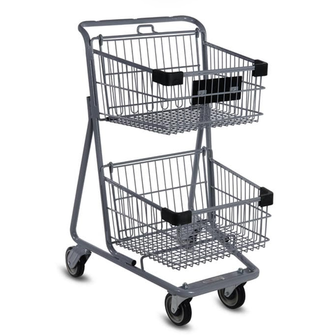 รถเข็นช้อปปิ้งสำหรับร้านขายของชำตะกร้าคู่ซูเปอร์มาร์เก็ต